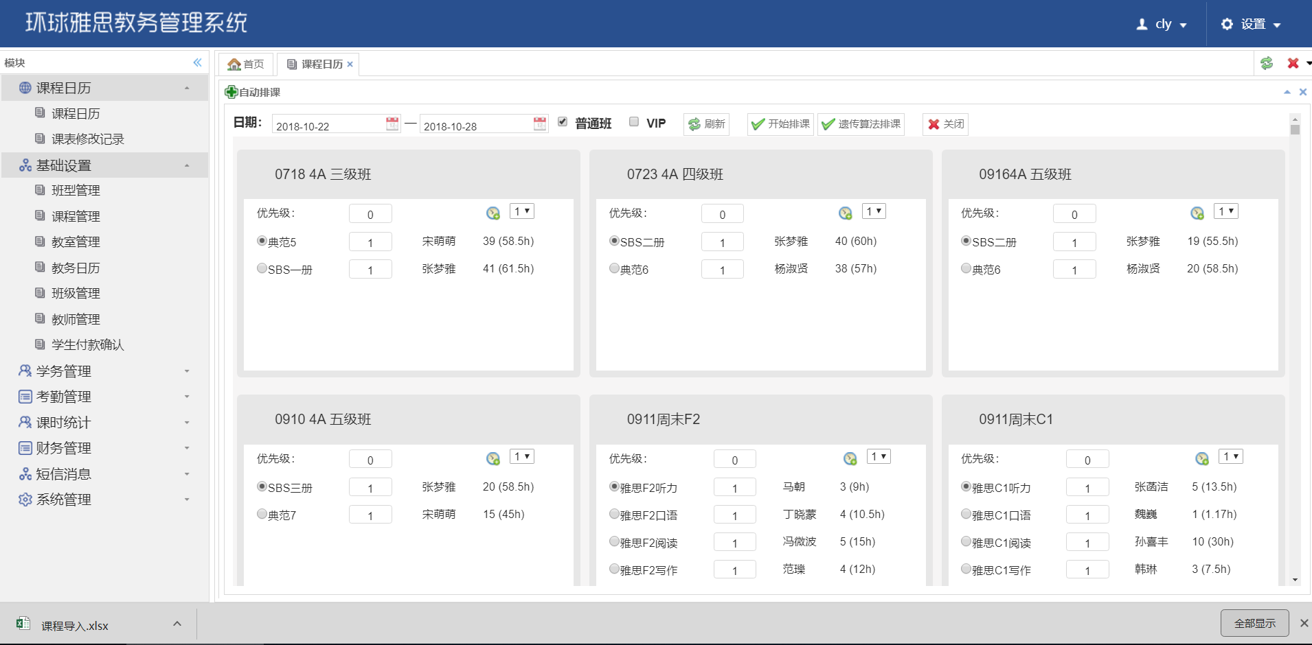 1、智能排課:基于遺傳算法進(jìn)行演化式智能排課,綜合教務(wù)日歷、課程設(shè)置、班級、教室、教師等因素自動尋找最優(yōu)化解決方案;